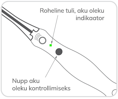 Vajutage käepidemel olevat nuppu. Kui LED-tuli süttib tähendab see, et aku on laetud ja toimub ionisatsioon. Tavakasutusel on aku eluiga vähemalt üks aasta. Kui indikaator ei sütti, vahetage hari välja.